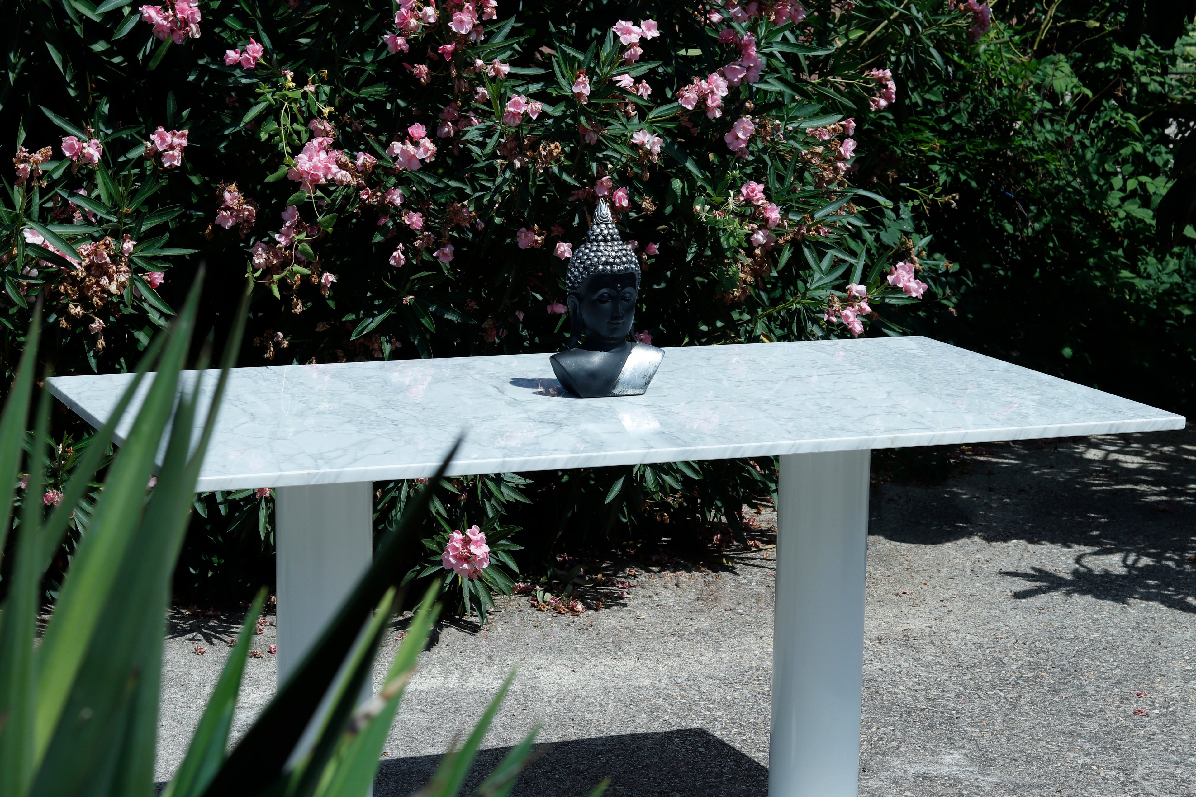 SU SOBRE DE MARMOL CON CANTOS SUAVIZADOS APORTA PROFUNDIDAD Y BRILLO CONTROLADO.MIENTRAS EL DOBLE (O TRIPLE) PEDESTAL CILINDRICO EN ACERO CARBONO SOSTIENE LA PIEZA CON UNA PRESENCIA ESCULTORICA Y LIGERA ,RECORDANDONOS A "LOS GRANDES PANTEONES ROMANOS"